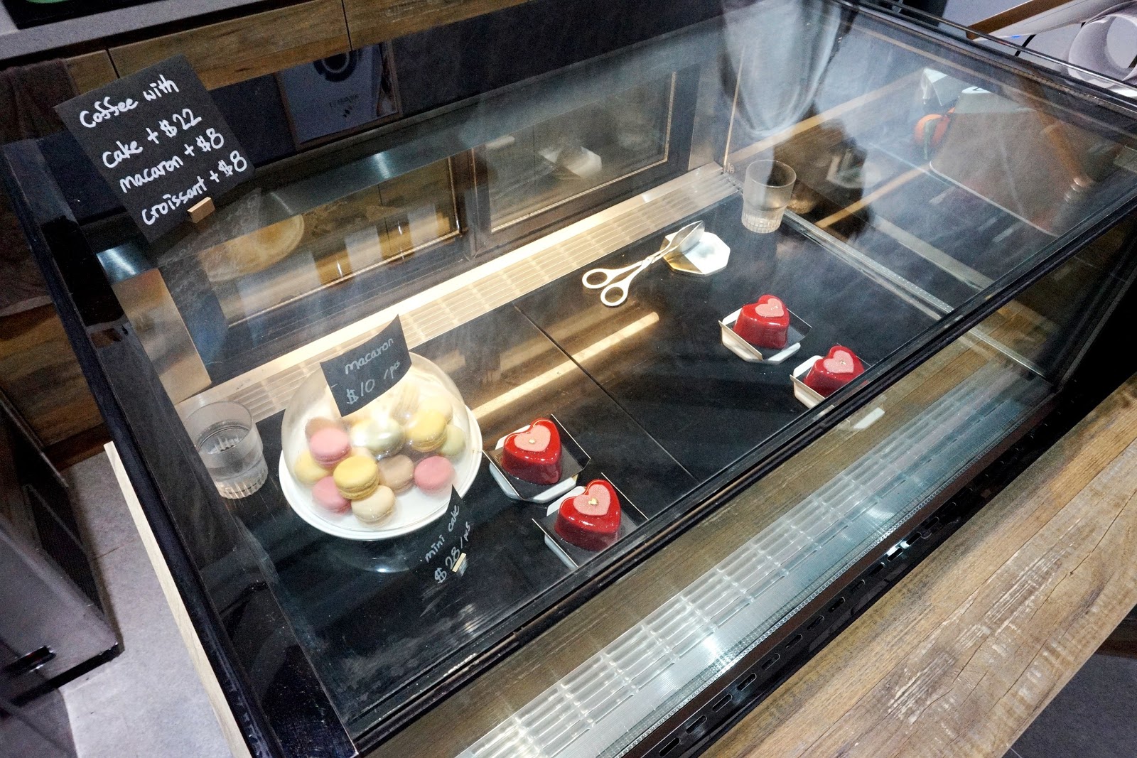 故此,喺另一邊餅櫃裡面所見,亦只喺有啲卡龍及件裝蛋糕,是日所見,就只得一款荔枝味慕絲蛋糕,心形造型,別緻亮麗。
