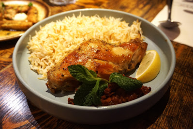 主食喺烤法國野兔脾配上米飯,印象上,我幾敢肯定喺第一次食野兔脾,睇賣相隻兔脾燒得幾靚仔,原來兔脾都幾大隻,口感個人覺得幾似雞肉,因為加咗啲香料去焗,所以,幾入味,又幾香;而啲米飯似喺印度米,因為外形較為修長,食落比較爽身,伴上薄荷蕃茄醬,香濃得嚟又帶點清新。